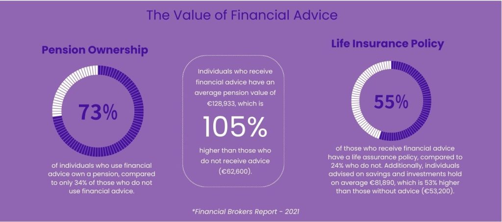 Financial advice encompasses a wide range of services designed to help individuals and families make informed decisions about their money. Here are three key statistics from the “Value of Financial Advice” report that highlight the importance of getting financial advice in Ireland: