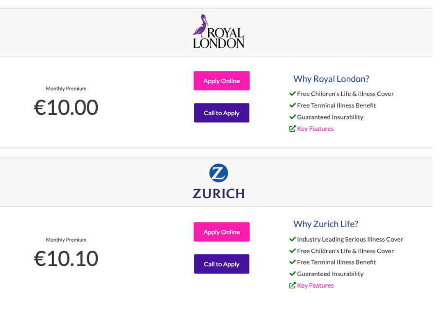 We have access to every life insurance company on the market allowing us to get you the most suitable and most competitively priced policy on the entire market. We work with Zurich, Aviva, Royal London, Irish Life, and New Ireland. And the best thing is, you can do it all from the comfort of your home!