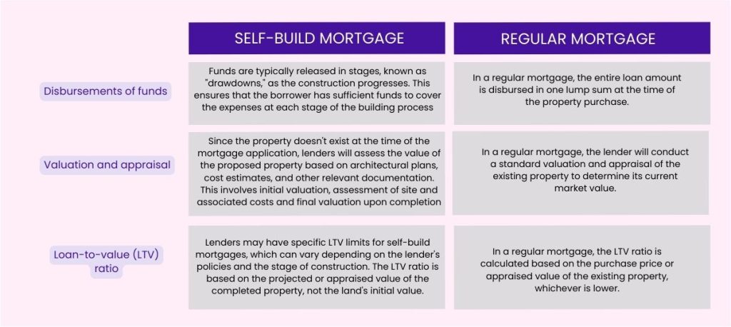 Building a new house is an exciting milestone in one’s life, but it can also be rather stressful. A self-build mortgage is different from a regular mortgage in several key ways, primarily because it is designed to finance the construction of a new home rather than the purchase of an existing property. Here are the main differences between a self-build mortgage and a regular mortgage: